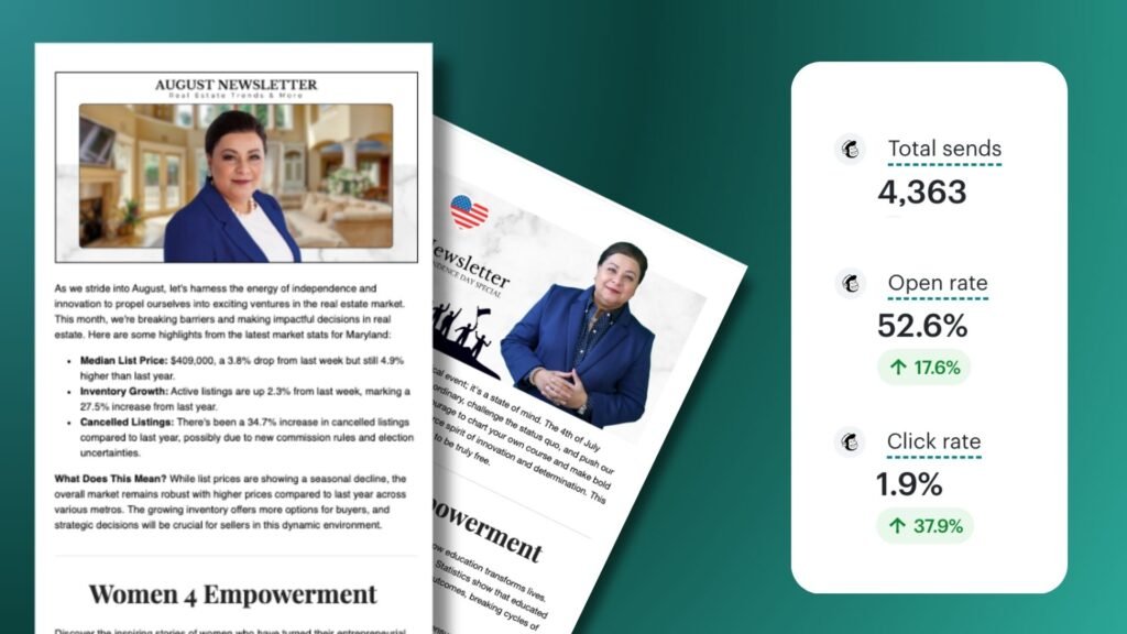 The results crushed industry averages. Across 4,000+ sends, her newsletters achieved a 52.6% Open Rate—an increase of 17.6% over her previous baseline. This kept her top-of-mind with her sphere without ever feeling “salesy.”